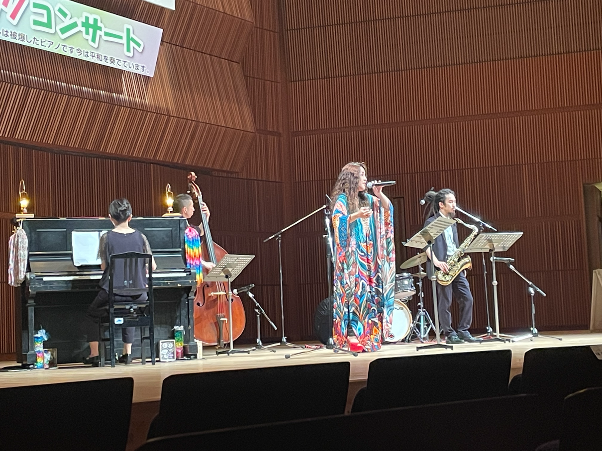 続いて、地域生協で活動している「山形生協 うたごえサークル たんぽぽ」と「北村山生協 こぱる組」が発表を行い、メインステージではゲストのJAM SHEENAさんが、ジャズの名曲やポップスなどをソウルフルな歌声と洗練された演奏で会場を盛り上げてくれました。