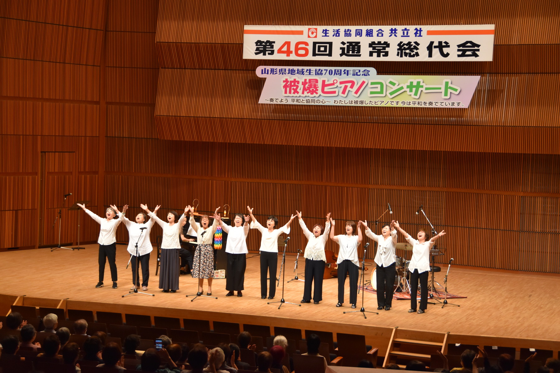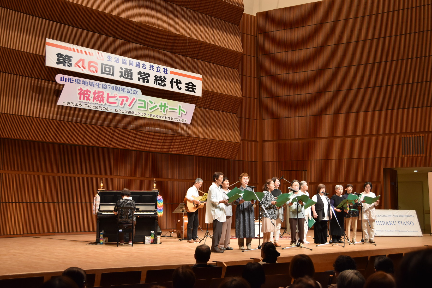 また、今年は生協共立社の前身である鶴岡生協創立から数えて70周年を迎えたことを記念し、総代会終了後に「山形県内地域生協設立70周年記念企画 被ばくピアノ平和コンサート」を開催しました。