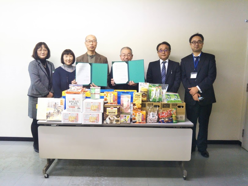 羽陽和光会芳賀友幸施設長から「羽陽和光会は、刑期を終えた方が社会復帰するまでの3~6か月間、普通の生活ができるよう支援している更生保護法人です。このたび、コープフードバンクから支援を受け大変感謝しています」と挨拶がありました。対して、共立社から伊藤議長が「日本では年間約600万トンの食品が廃棄され、これは国連の食糧援助量の二倍に当たります。一方で食を必要としている方もいて、フードバンクの活動が広がっています。生協は買い物だけでなく、地域の社会貢献にも取り組んでいます。今回の締結で少しでも地域に貢献できればと思います」と挨拶し、締結の意義が確認されました。
