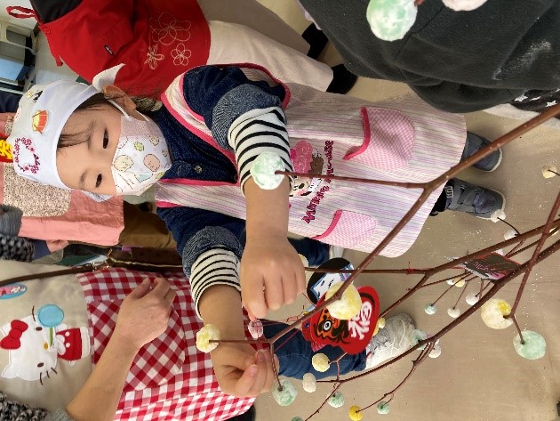 飾りつけした子どもたちの健やかな成長を願った「だんご木」。