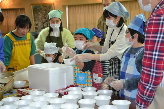 子どもたちの大きな声での「いただきま~す!!」の後は、手作りの🍙おにぎり(山盛りすぎて食べきれず・・・😢)と余目のつきたて餅のお雑煮に舌鼓を打ちながら、1年間の活動を振り返る動画視聴📺、