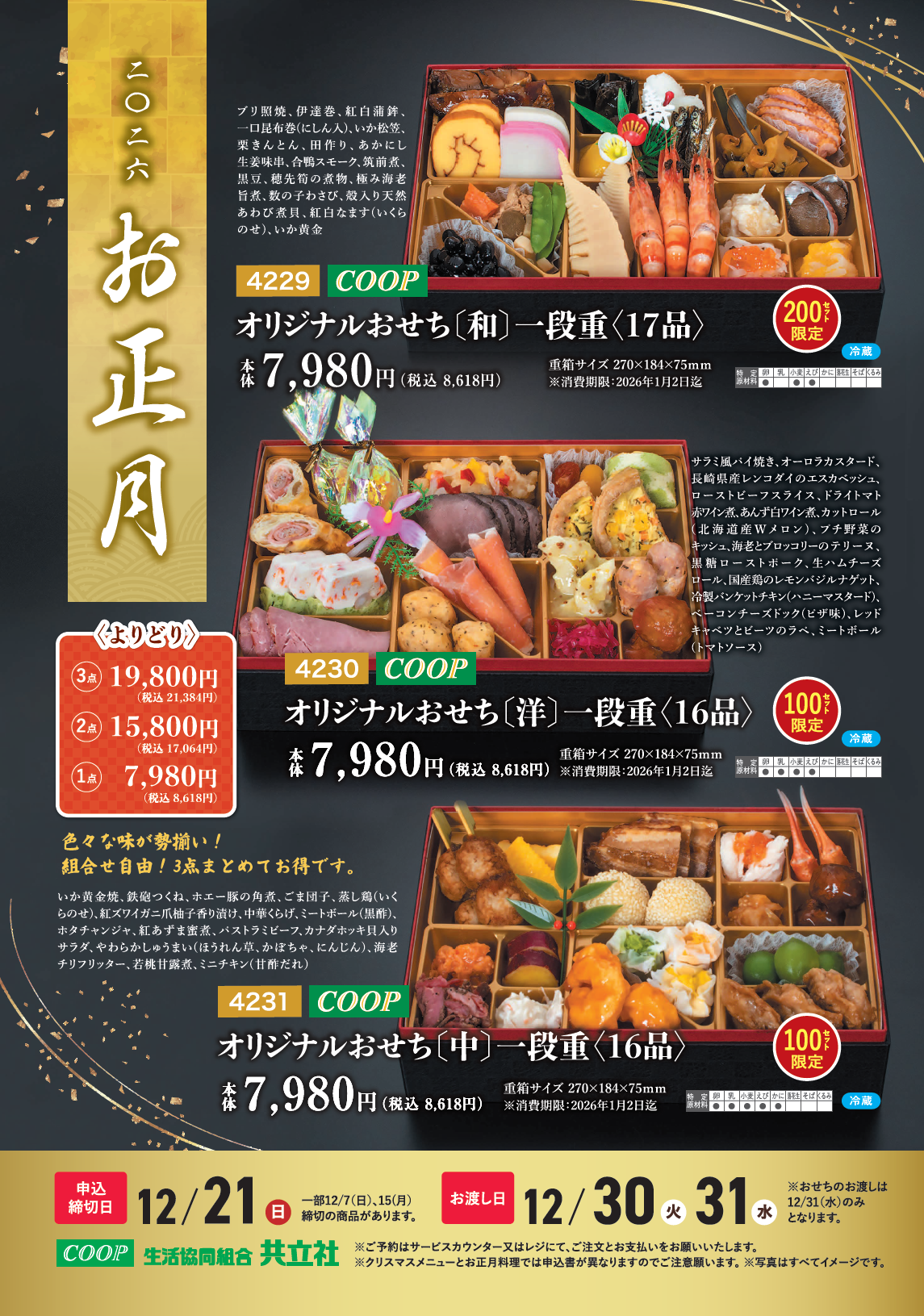 TOPページ > くらしのセンター > 「お正月料理」ご予約承ります。