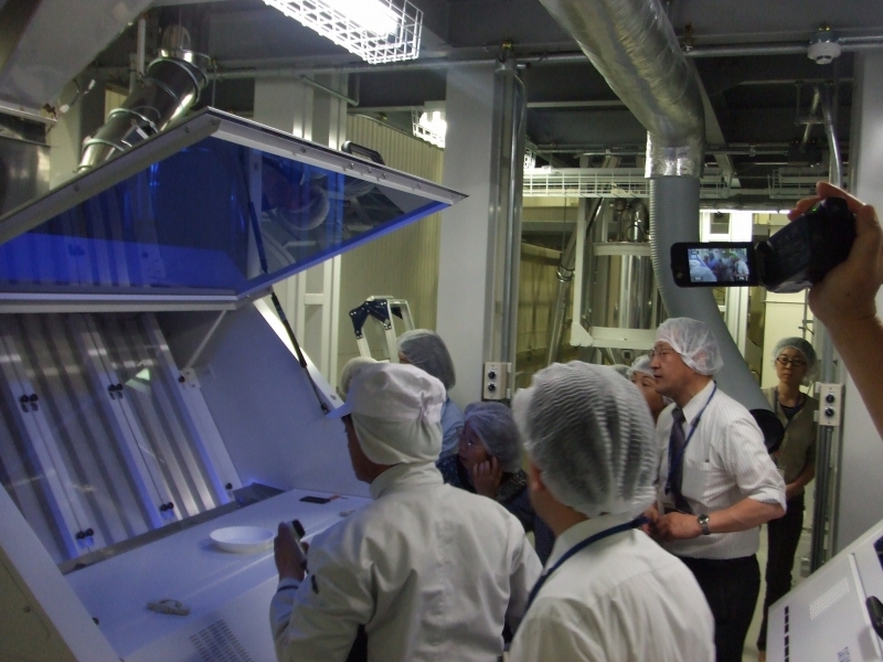 柴田工場長より、徹底的な清浄、異物・異質物混入防止対策を行い、安全・安心のシステムであることはもちろん、日本一短い製造工程、小ロットにも対応できる日本最新鋭の設備ですので、じっくり見学してくださいと挨拶がありました。