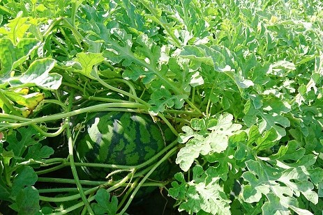 集荷場の裏の園地を見せていただくと、葉っぱに隠れてスイカがごろごろ!私たちの手に届くのがますます楽しみになりました。センターの商務によると、家族構成の変化から小玉スイカやカットスイカの利用が高くなっているとのこと。今年もカットスイカの大量目商品の品揃えを計画しているそうです。共同購入では、資材の高騰により価格が若干あがりますが、ご家族が集まる時期に需要の高いスイカ、8月3週まで企画を予定しています。