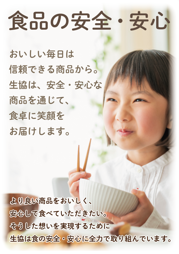 生協での 「食品の安全」の取り組みについてのご紹介です。